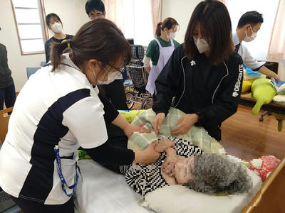 続いてモデルの職員を寝かせて体圧の状態を確認し…