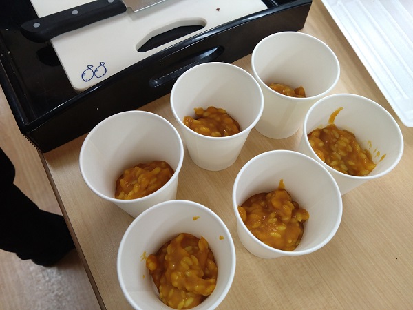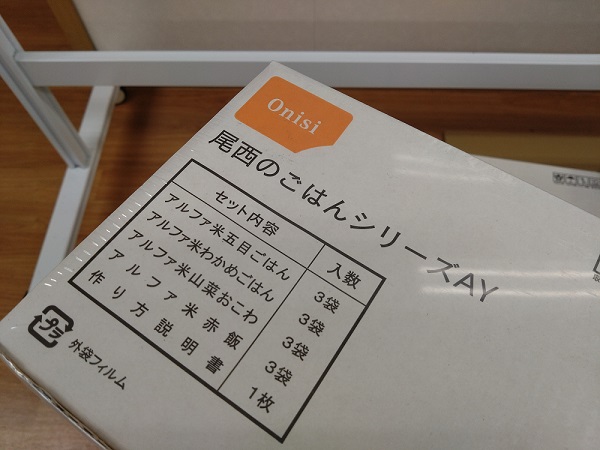 こちらもドラッグストアで見かけますね。コンビニおむすびに比べると倍近い金額ではありますが、簡単に準備できて配布もしやすく、そのまま食べられるのはいいですね。味も良好でした。