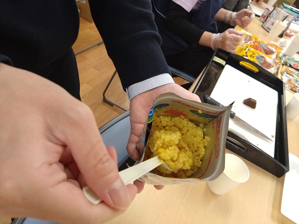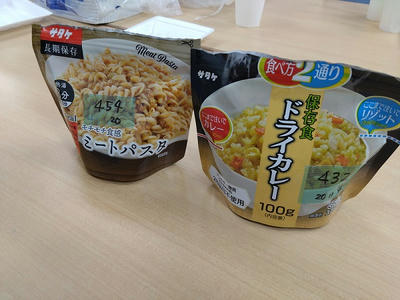 今回、非常食の入替えを行うにあたっては、『量』や『金額』はもちろんのこと、何より食べた時の『満足度』を優先して選択しようということにしました。理由は、被災時に勤務していた職員は必然的に拘束されてしまうことになるためです。そんな職員に対する労いの意味も込めて食事の質の向上となった次第です。