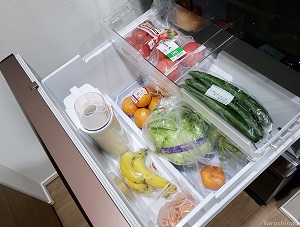 大きさはこれまでの冷蔵庫と大差ないのですが、容量は80Lほど違うようです。野菜室も使いやすそうですし、冷蔵、冷凍それぞれが完全独立しているため、ニオイ移りの心配もないようです。他にもいいところがたくさん。主婦(主夫)の味方です。