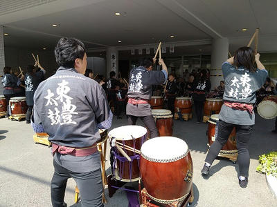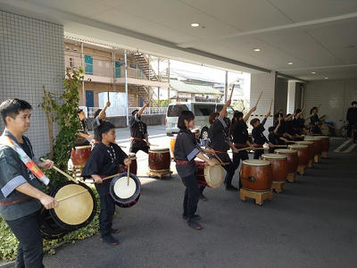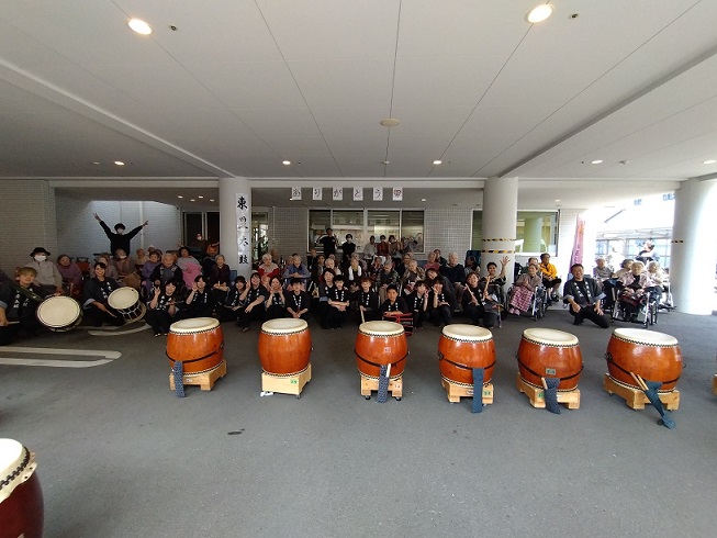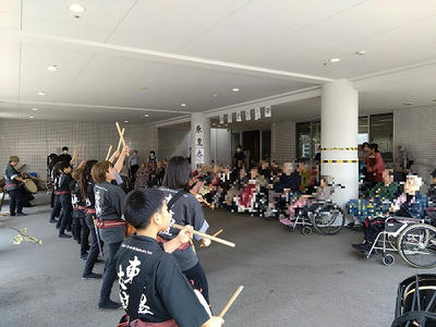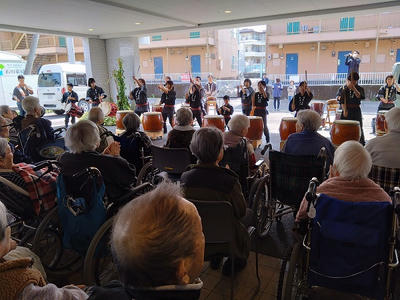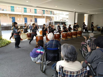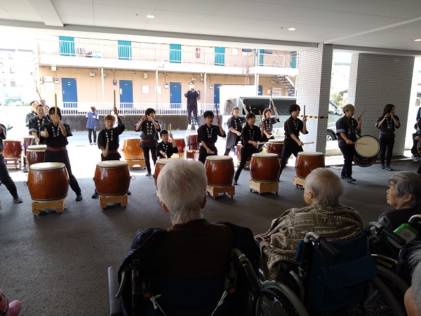 東豊太鼓の皆さん、年度末の忙しい中、学生さんは短い春休みの貴重な時間をありがとうございました。聴いているだけで活力がみなぎってきました。入居者さん、職員、近所の方、みんな楽しめたと思います。ぜひまた演奏を聞かせに来てください!