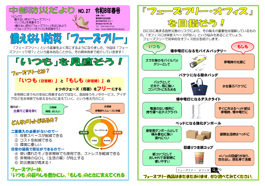 中部地域局 危機管理課さんに許可をいただいたので『中部防災だより』を掲載いたします。
