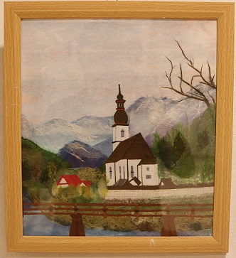「染色」「革細工」「水彩」「油絵」「ちぎり絵」「写真」など、ジャンルを問わず定期的に皆様より作品をお借りし、入居者様、職員の目を楽しませていただいております。先日も小鹿の「来・て・こ」で活動されている「ちぎり絵同好会」様よりご連絡をいただき、4月から展示させていただいてた作品との入れ替えを行いました。