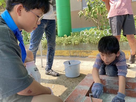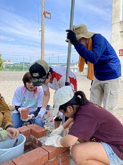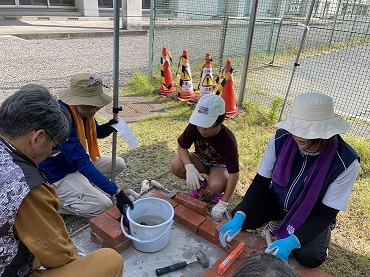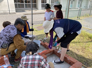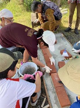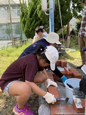 続いて豊田中のかまどベンチ作りの様子です