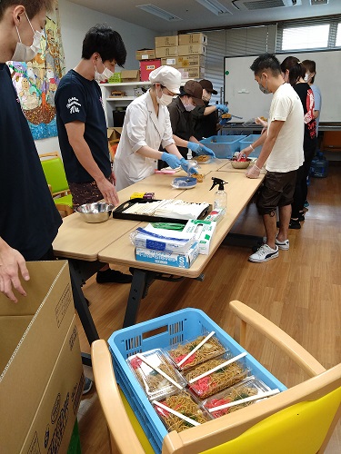 施設の方では17時の販売開始に合わせて厨房さんが『焼きそば』を作り、デイルームでパック詰めを開始。