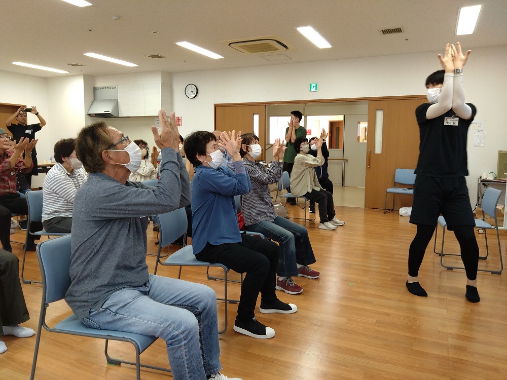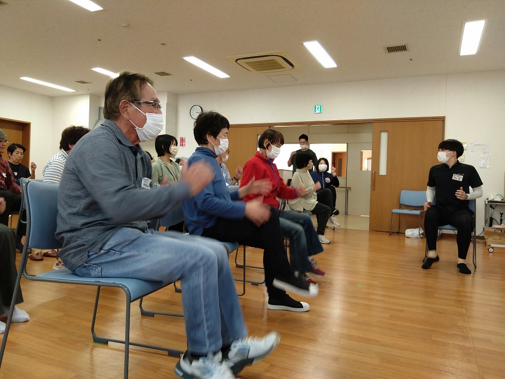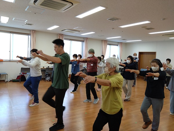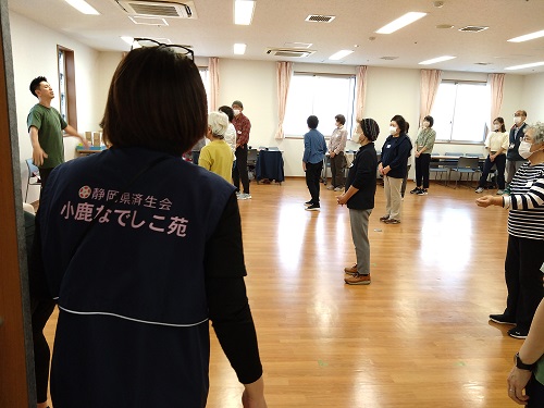 まずは、小鹿なでしこ苑の機能訓練士による「懐メロ×エアロビ体操」