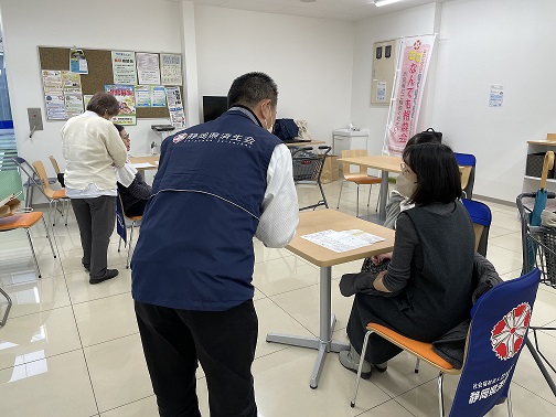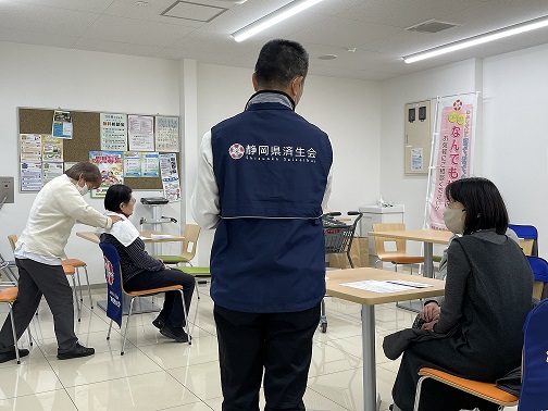 ただし、実際は、なかなかこの場での相談はなく、施設のPRがメインになっています。今回も静岡県済生会を知ってもらいたい…という思いから静岡医療福祉センター・ライトホームの指圧鍼灸師さんに同行をお願いして10分~15分ほど無料で施術(マッサージ)をしていただきました。