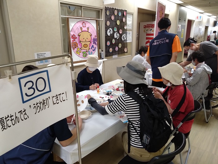 今回、小鹿なでしこ苑は「30」番ブース担当で、うちわ作りを行いました。