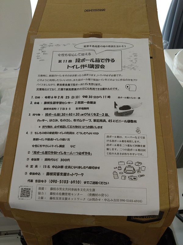 被災当初は「掃除道具」が不足しているため、物資が届くようになるまでは「持参」してほしいとのことでした。ここでいう掃除道具とは、水かき用のワイパー、デッキブラシ、ほうき、チリトリ、バケツ、手袋、雑巾などです。また、給水車が来るまでは水もないため、飲料水とは別に掃除用の水もほしいとのことでした。