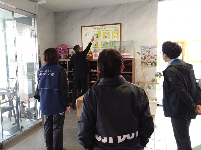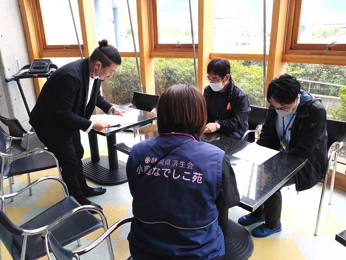 このように他施設と合同で防災訓練を行うのは初めてでしたが、実際にやってみなければ分からないことがいくつもあり、やった甲斐があったと思いました。また、有度の里さんの徹底した対策が何よりも勉強になりました。お忙しいところ協力いただきありがとうございました。