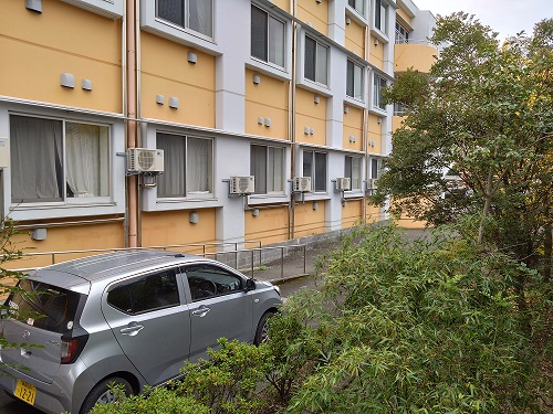 こちらも同様。室外機の位置が軽自動車の屋根よりも上にあるのが分かりますか?