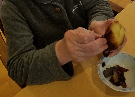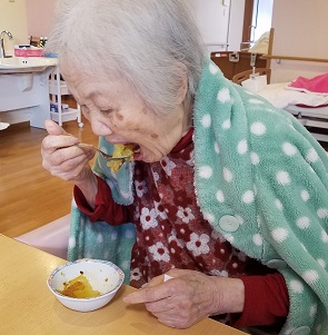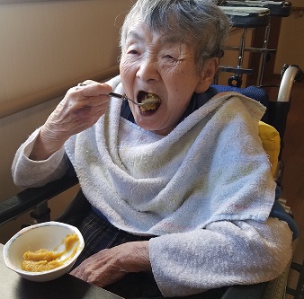 また、きざみ食やミキサー食などを召し上がられている方にも厨房さんに同じお芋でおやつを作っていただきました。こちらも大変好評でした。