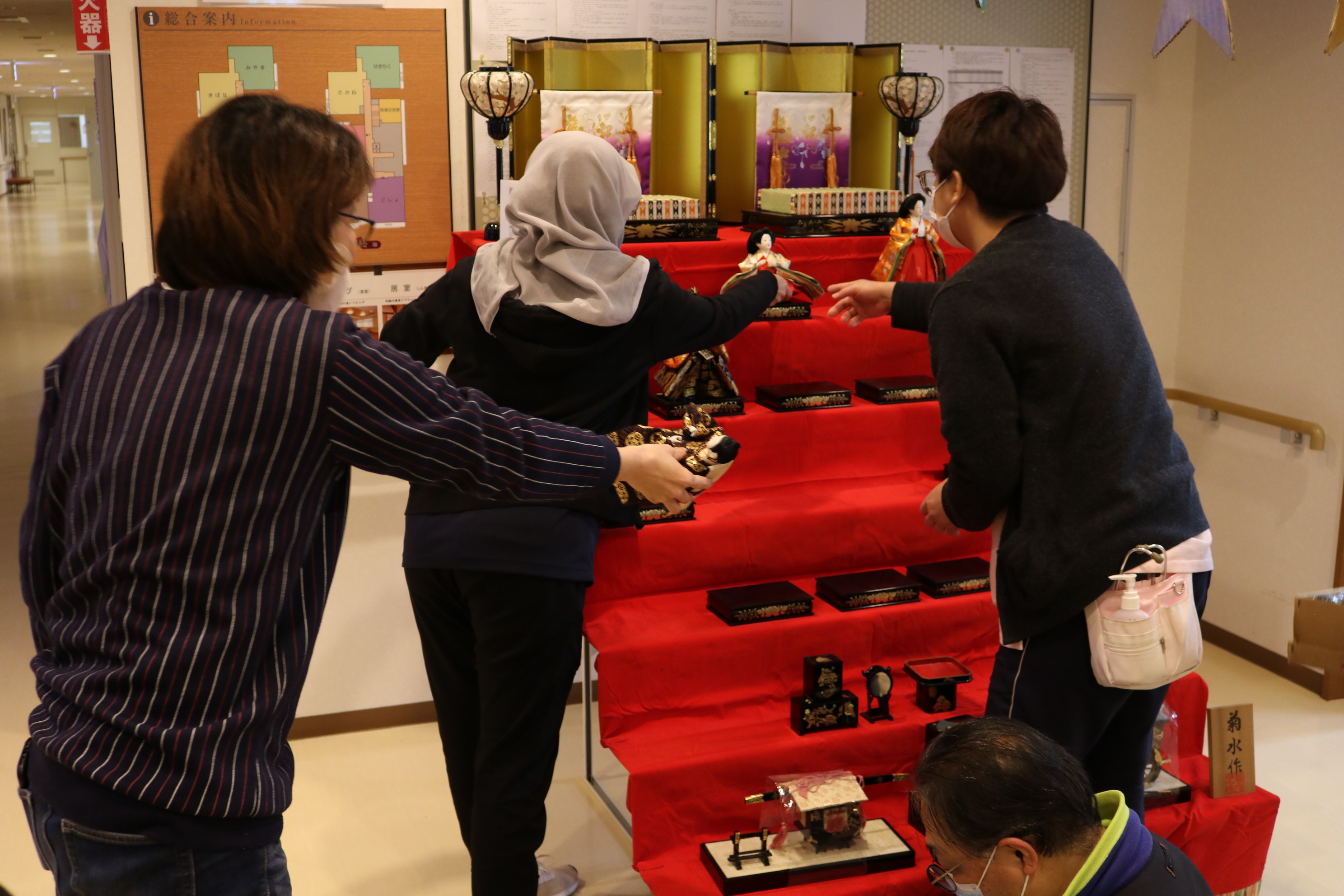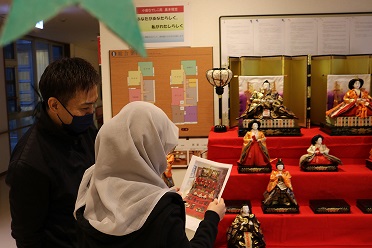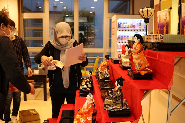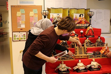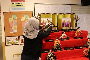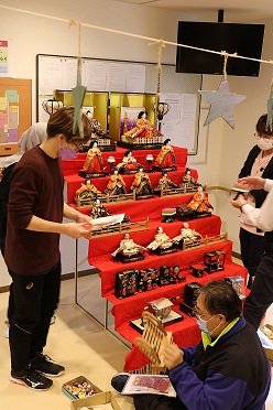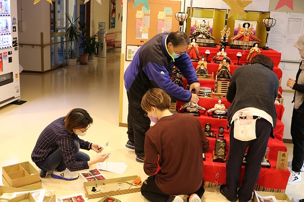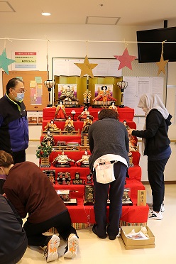「桃の節句」ということで玄関ホールにお雛様を飾りました