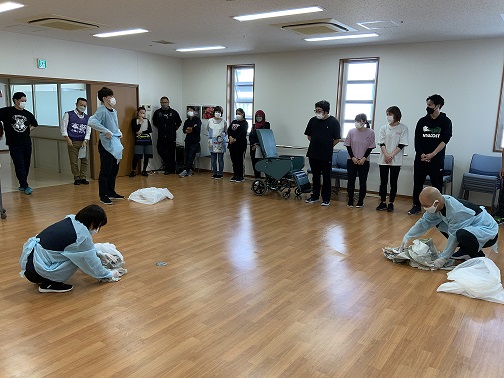 夜勤4名+宿直者1名の5名体制となるため、各々が何をすべきか理解していないと瞬時に判断して行動に移せません。いざという時を想定し、できるだけ現実的な訓練を定期的に行おう…というのが私たちの出した答えです。