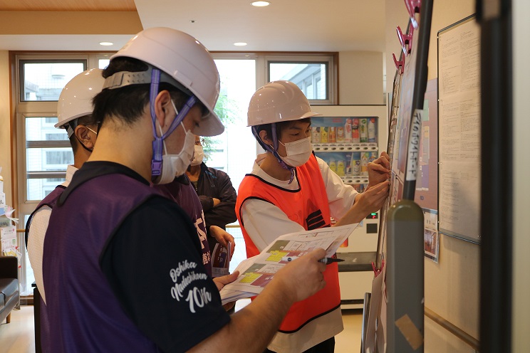 後から参集した職員が自分で施設の被災状況を把握できるよう情報はホワイトボードに集約