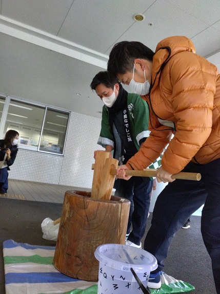 …と、いうことで小突く作業から突く作業まで、職員と地域の男性が力を合わせて頑張りました。