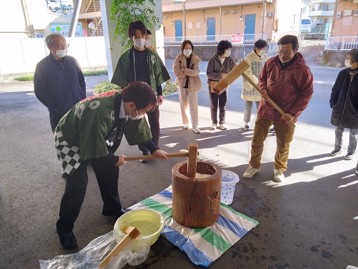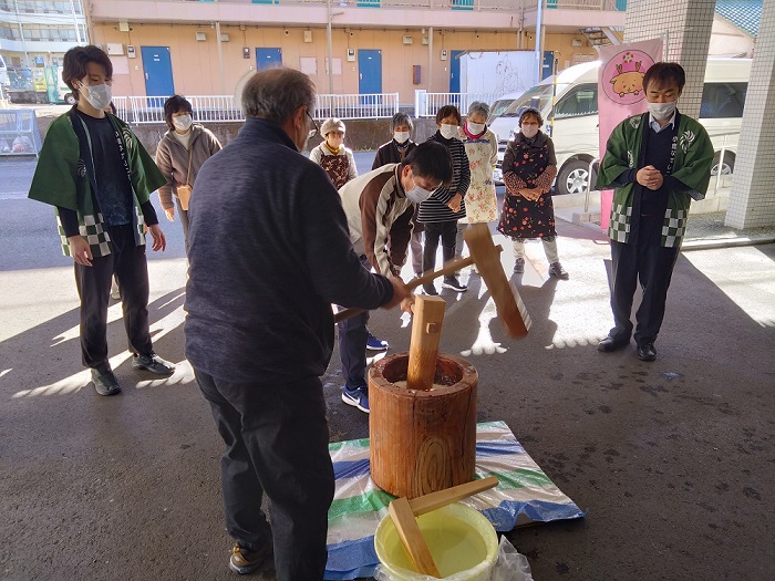 普段よりお世話になっている地域の皆さまへ恩返しの意味も込めて、餅つきを開催しました。