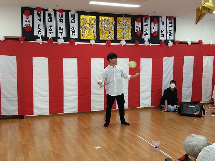 今年のお楽しみ会では、音楽ユニット奏音(かのん)さんによる演奏に始まり、静岡県立大学ジャグリングサークルの学生による大道芸が披露されました。