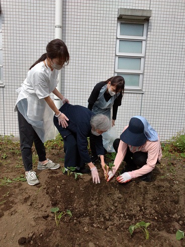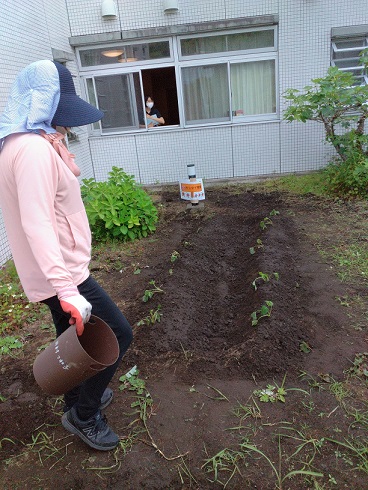 植え付けは入居者様も一緒に行いました。