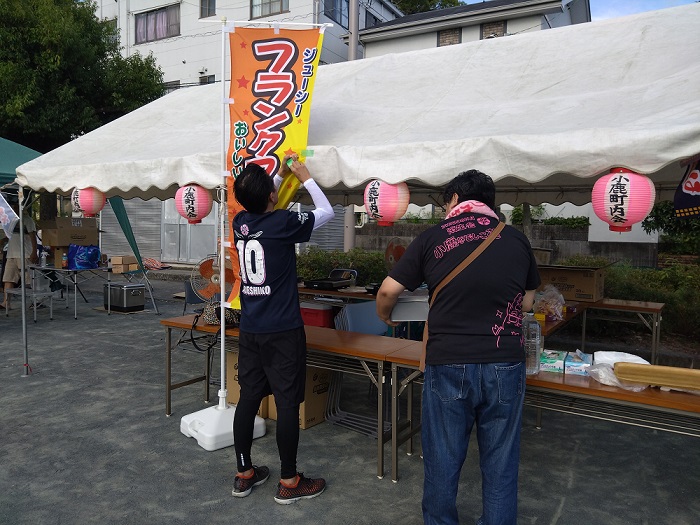 17時から夏祭りの第2部「夜店とステージ部門」がスタートするため、30分前に会場入りして夜店の準備を開始