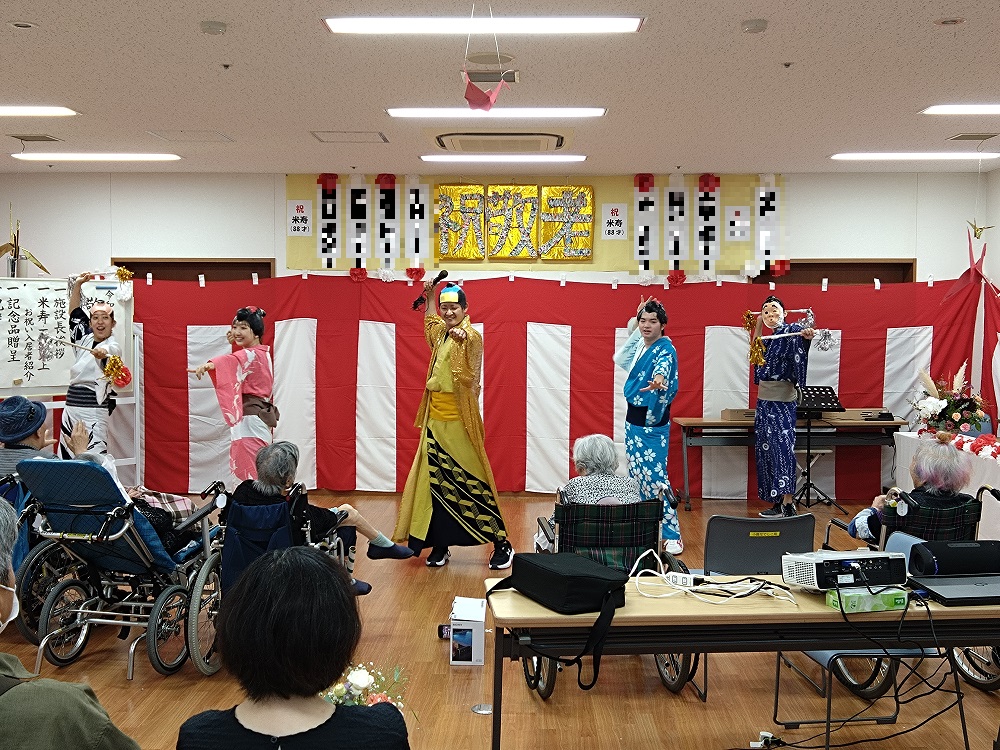 1945年に終結した第二次世界大戦から今年で80年が経過しました。戦後の復興に携わり、高度経済成長を支え、今の日本の基礎を築いてきたのは間違いなく高齢者の方たちです。私たちが好きなものを食べ、趣味を楽しみ、学校や仕事を自由に選ぶことができるようになったのも高齢者の方たちの働きがあってのことです。敬老会は、日本の発展に尽力した方たちを敬い、労う行事として生まれたものです。小鹿なでしこ苑でも入居者の皆様を敬い、ささやかではありますが敬老式典とお楽しみ会を開催いたしました。