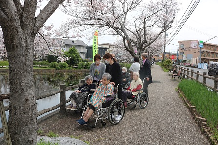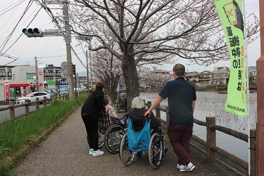 例年池の周りを一周ずつしているのですが、そうなると1グループあたり40分~50分になってしまうため、今年は途中でUターン。所要時間1グループあたり15分~20分。その代わりたくさんの方を連れて行くことができました。ご家族様も面会にみえた時に出掛けて行かれる方が大勢いらっしゃいました。1月に始めた公式LINEによる開花情報も役に立ったようで良かったです。