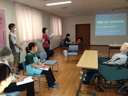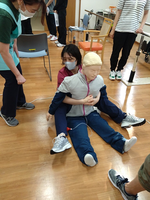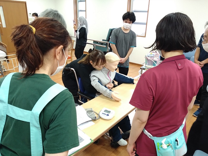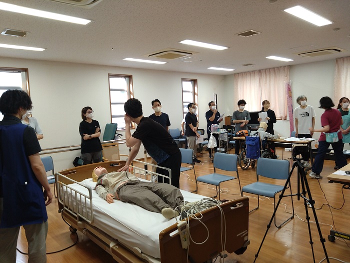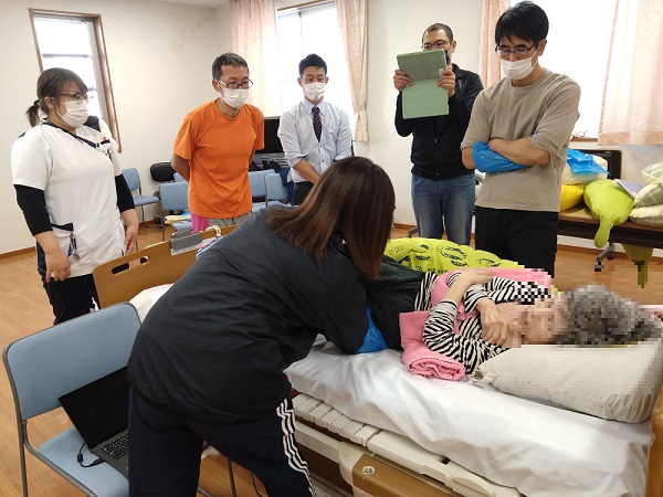 続いてポジショニングをどのようにしたらいいのか悩んでいる入居者さんを実際に見ていただき、直接指導を受けることにしました。
