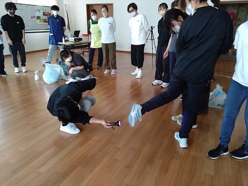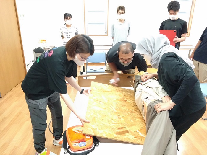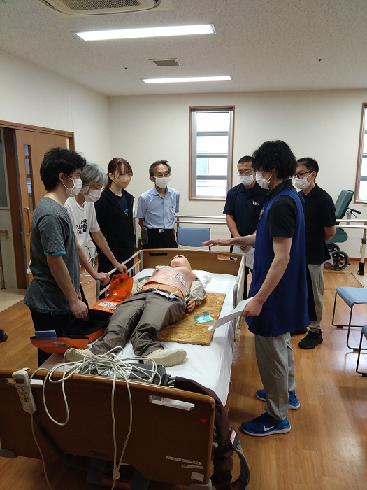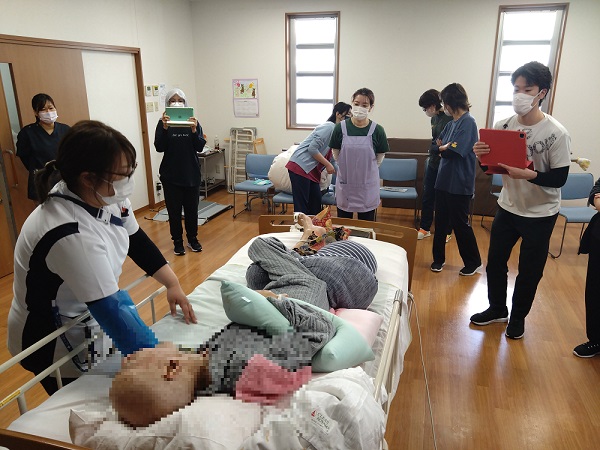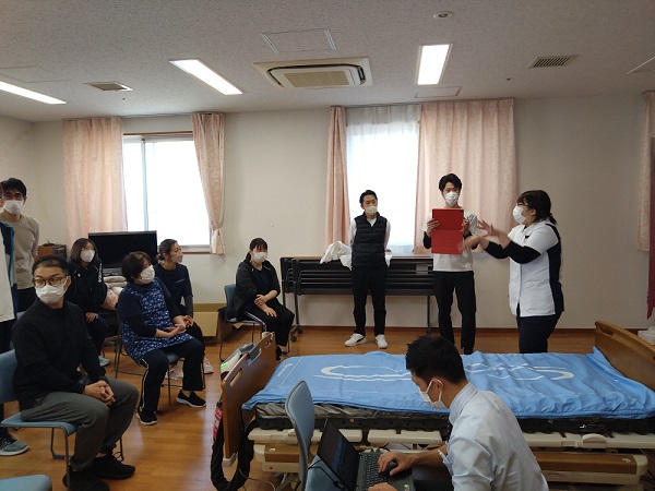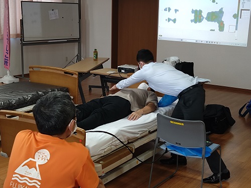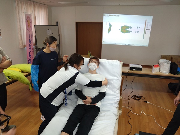 静岡済生会総合病院 皮膚・排泄ケア認定特定看護師さんとアルケア株式会社さんのご指導のもと、モニターで体圧の状態を可視化しながら「ポジショニング」と「除圧方法」について学びました。