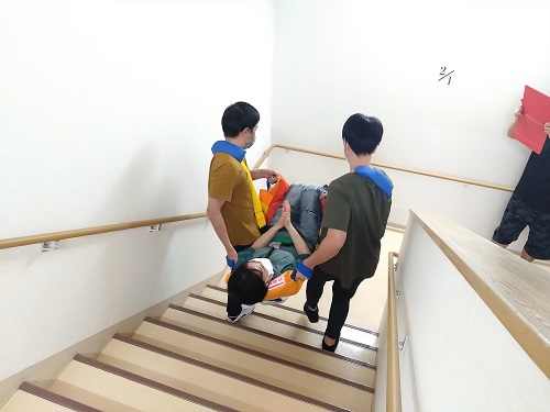 逆に、運ばれる側からすると、包まれている安心感はあるものの、階段は足元が全く見えないためかなり恐いとのことでした。今回体験した『ベルカ』は二人用でしたが、静岡DWATさんいわく四人用の『ベルカ』もあるそうです。四人であれば、一人当たりの負担もさらに減るので良さそうですね。